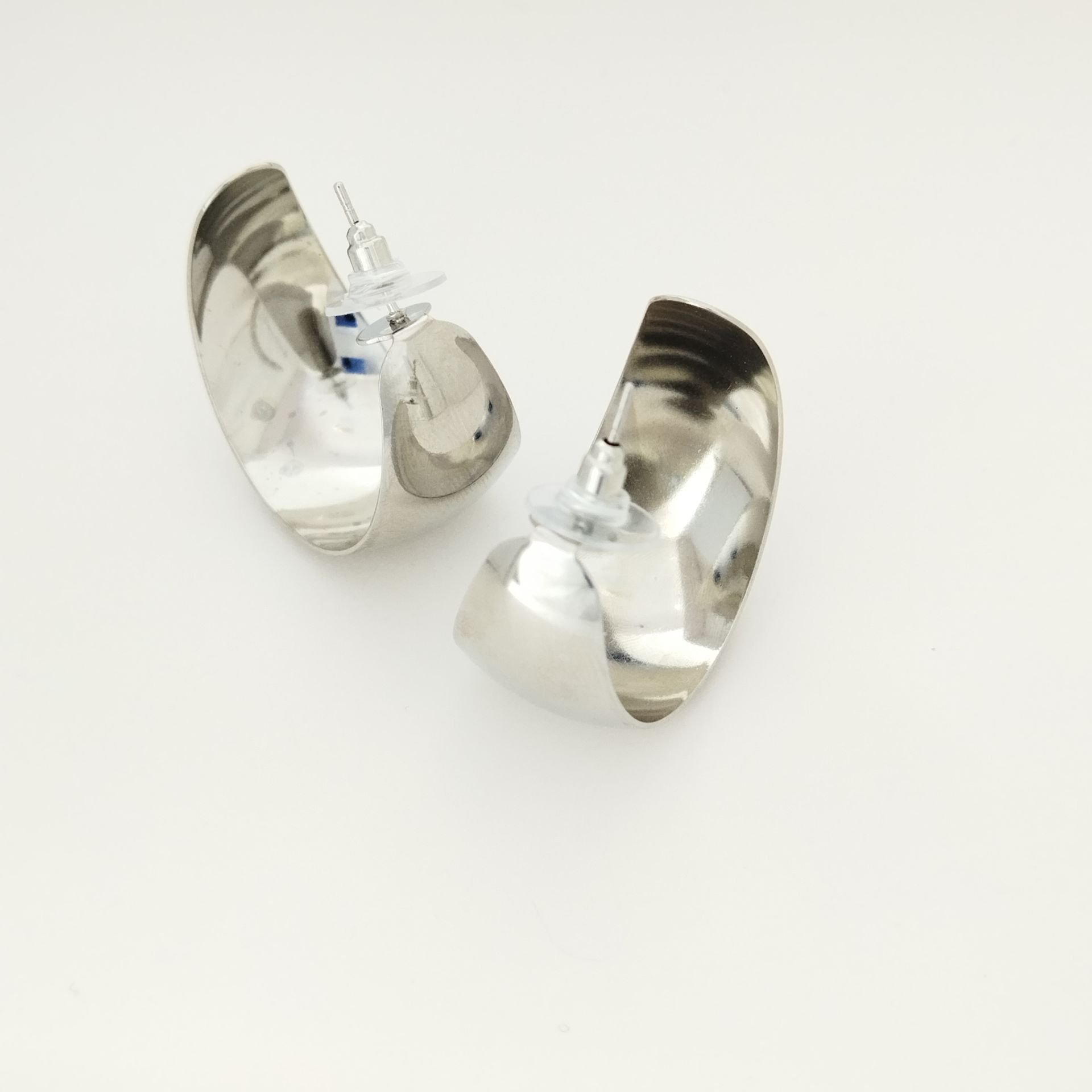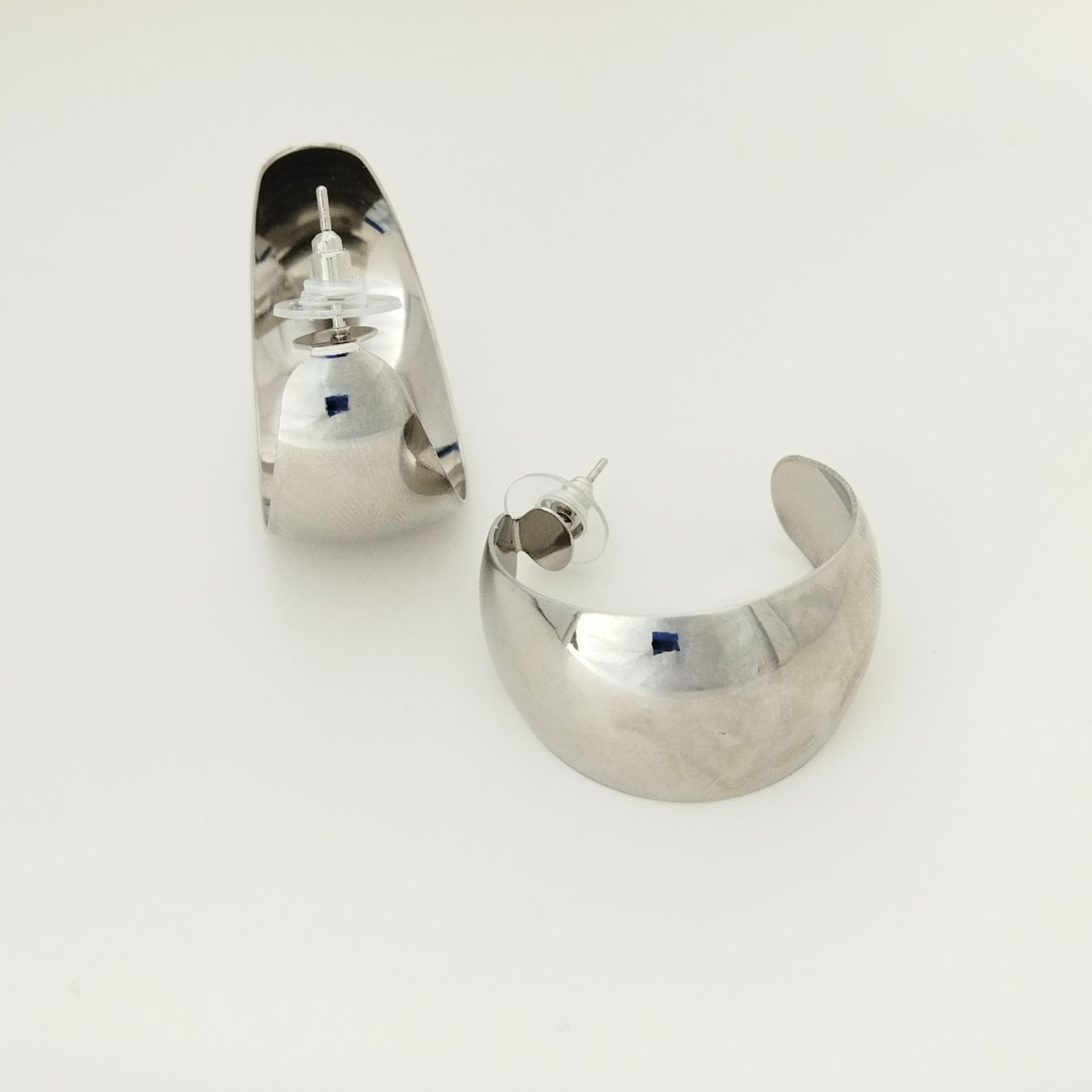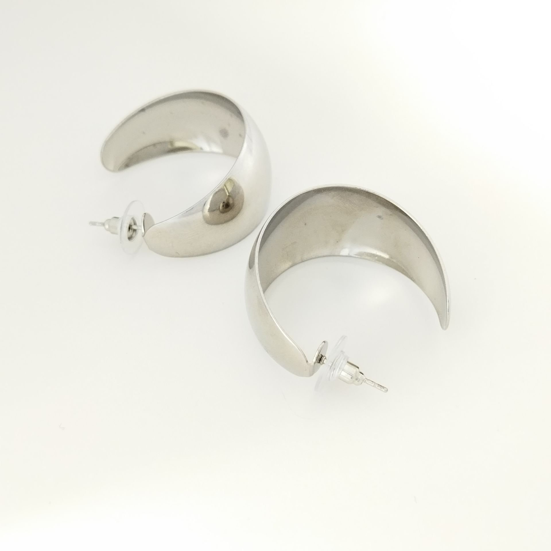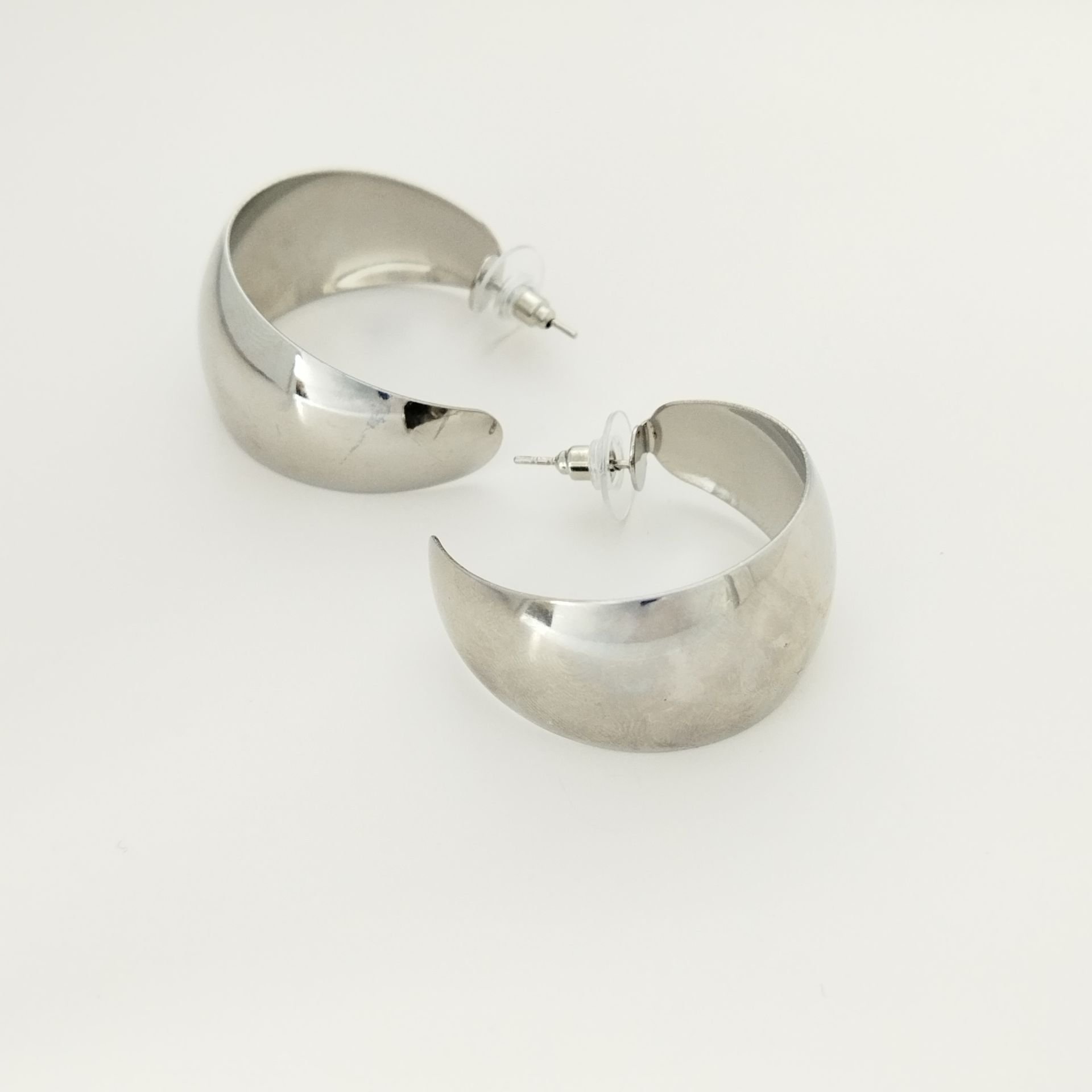 Farklı boyutlarda metal plaka halka küpeler, şıklığı ve zarif görünümü ile her tarza uyum sağlar.