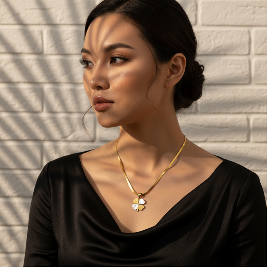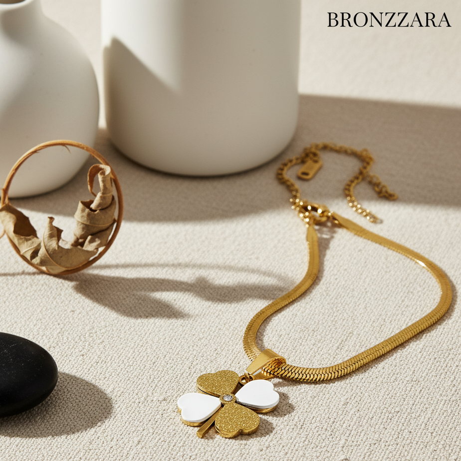ÇELİK SEDEF TAŞLI CHARM YONCA KOLYE
