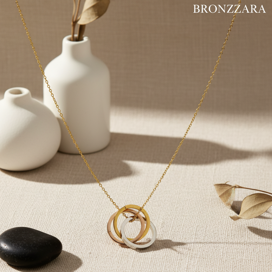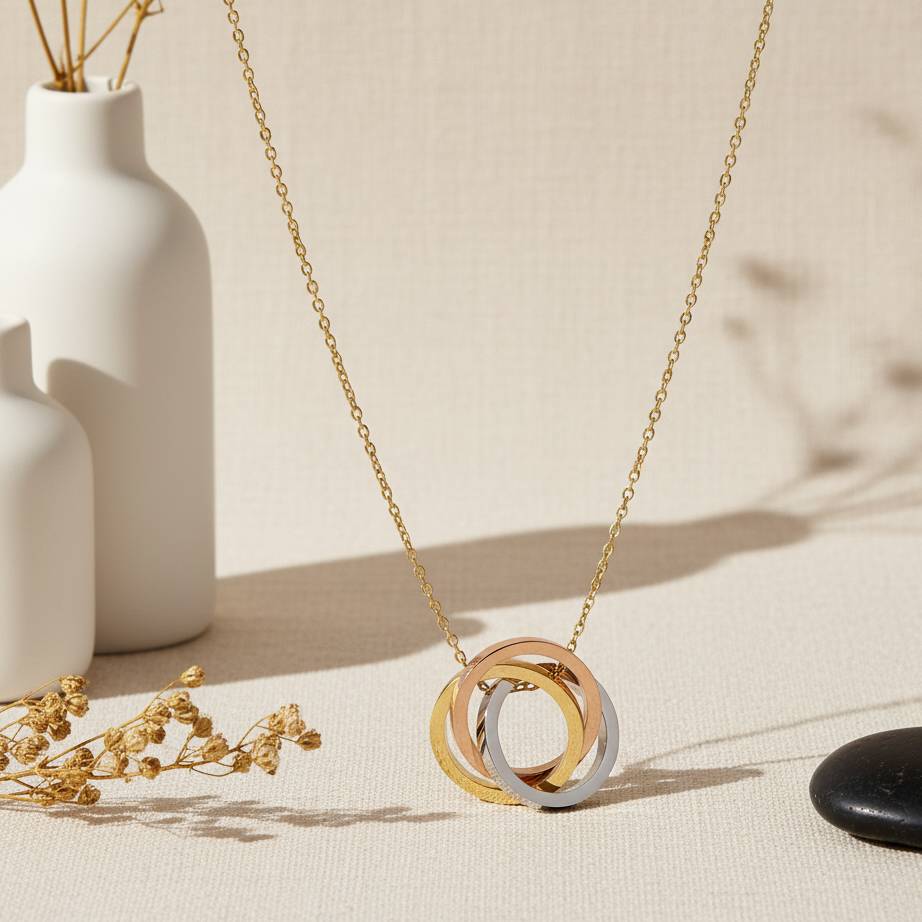 ÇELİK ÜÇ RENKLİ HALKA KOLYE