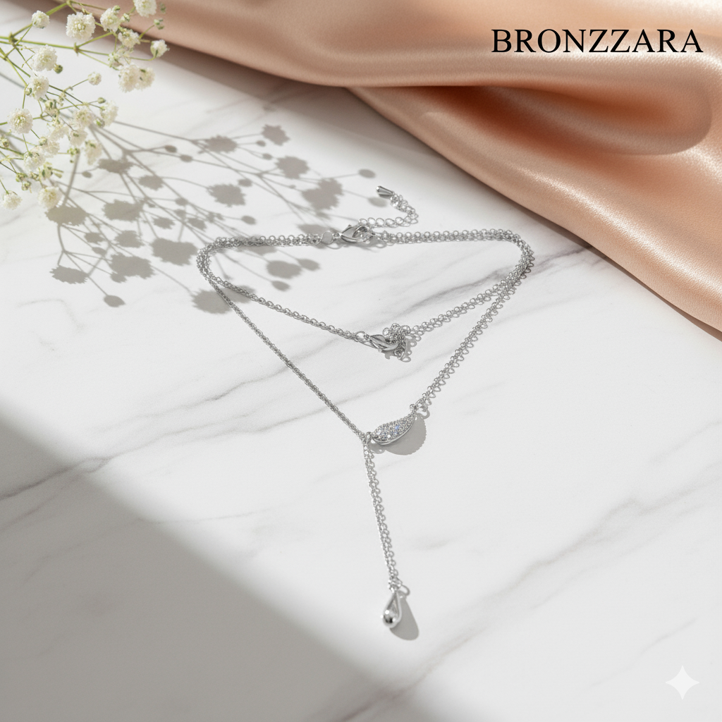 SU DAMLASI TAŞLI ÇELİK Y KOLYE