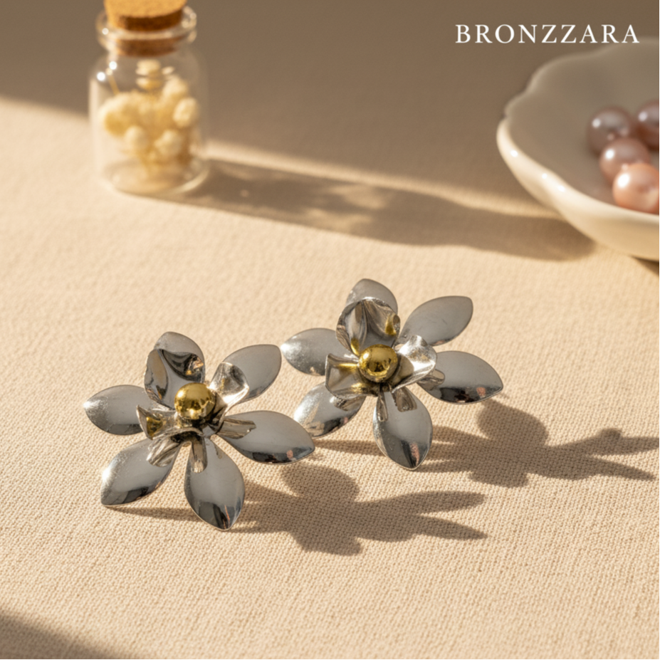 ÇİFT RENK ÇELİK ÇİÇEK KÜPE