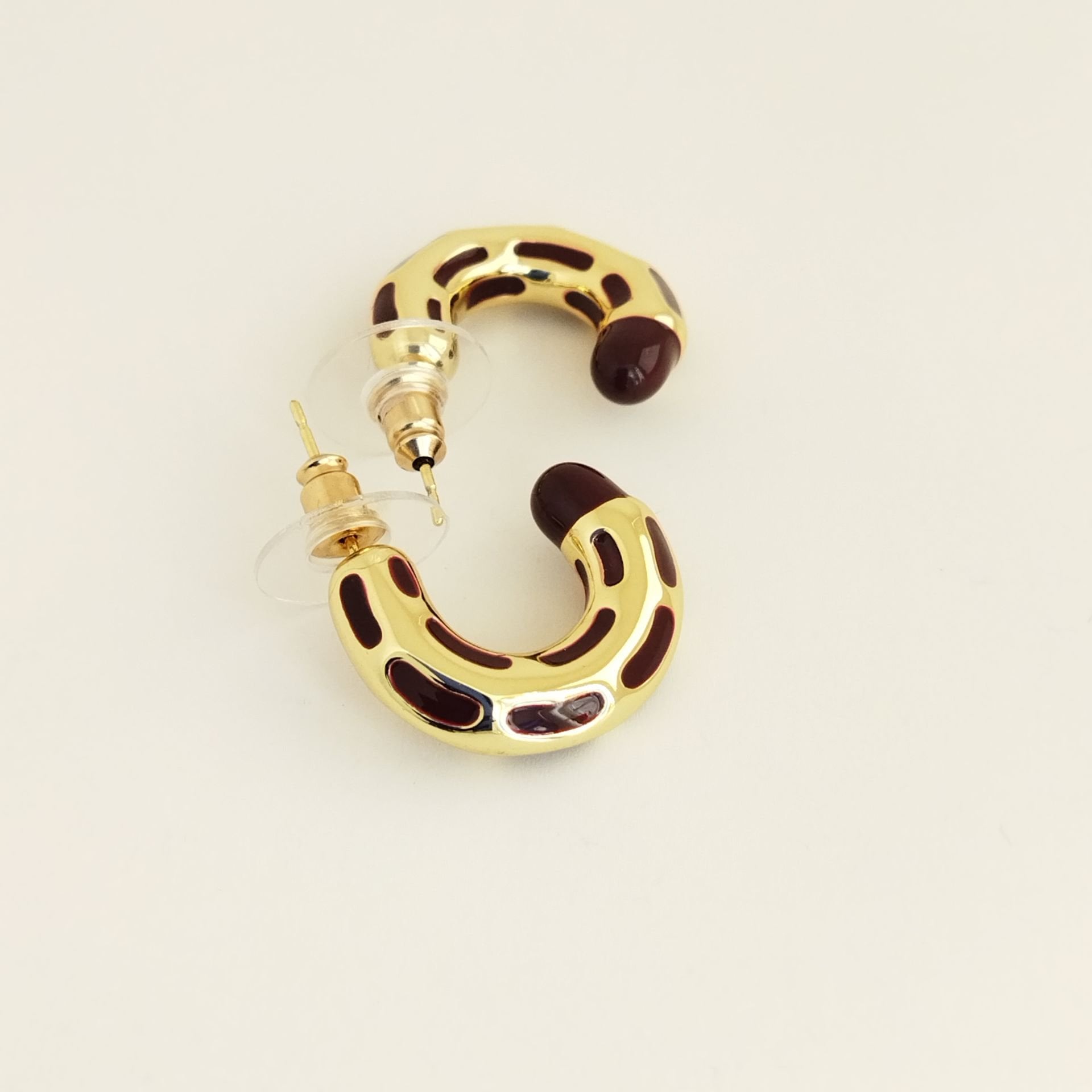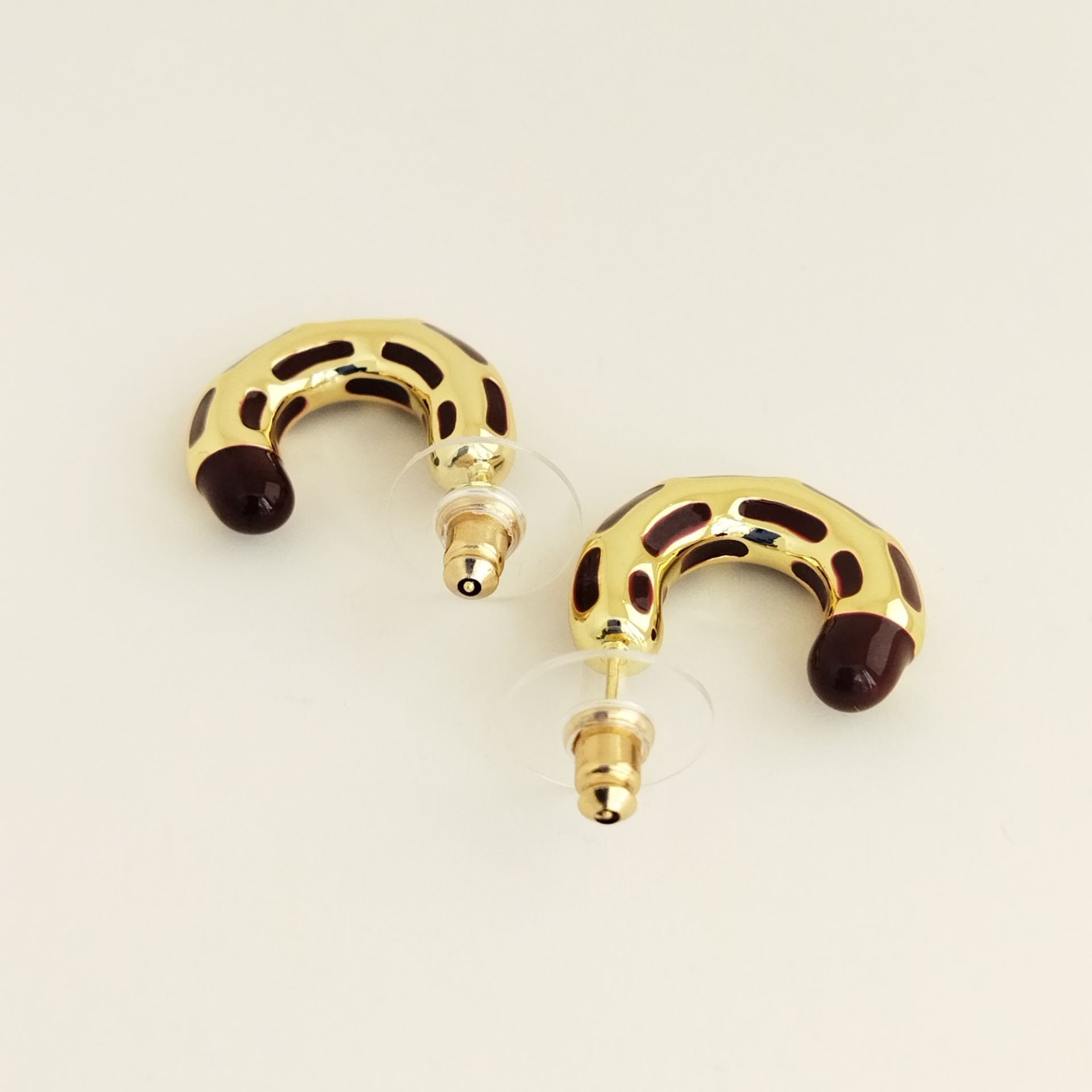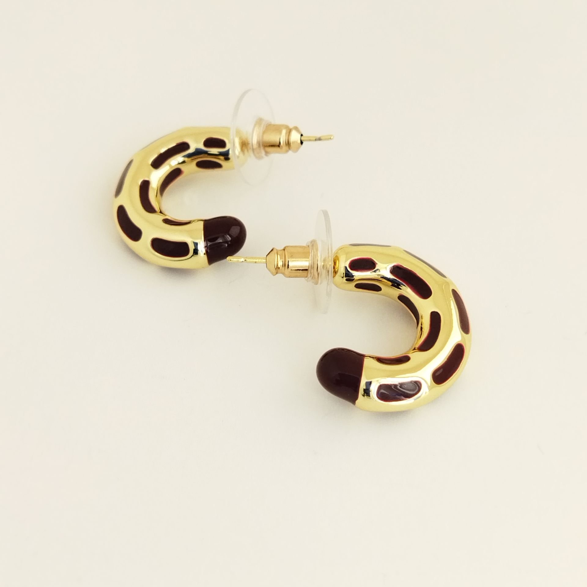 Bu metal çivili tasarım küpeler, zarif ve şık bir görünüm sunar.