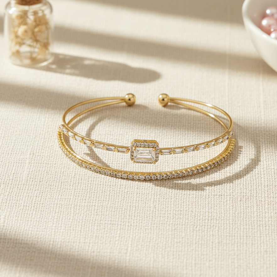 Çift Sıra Baget Taş Detay Bilezik