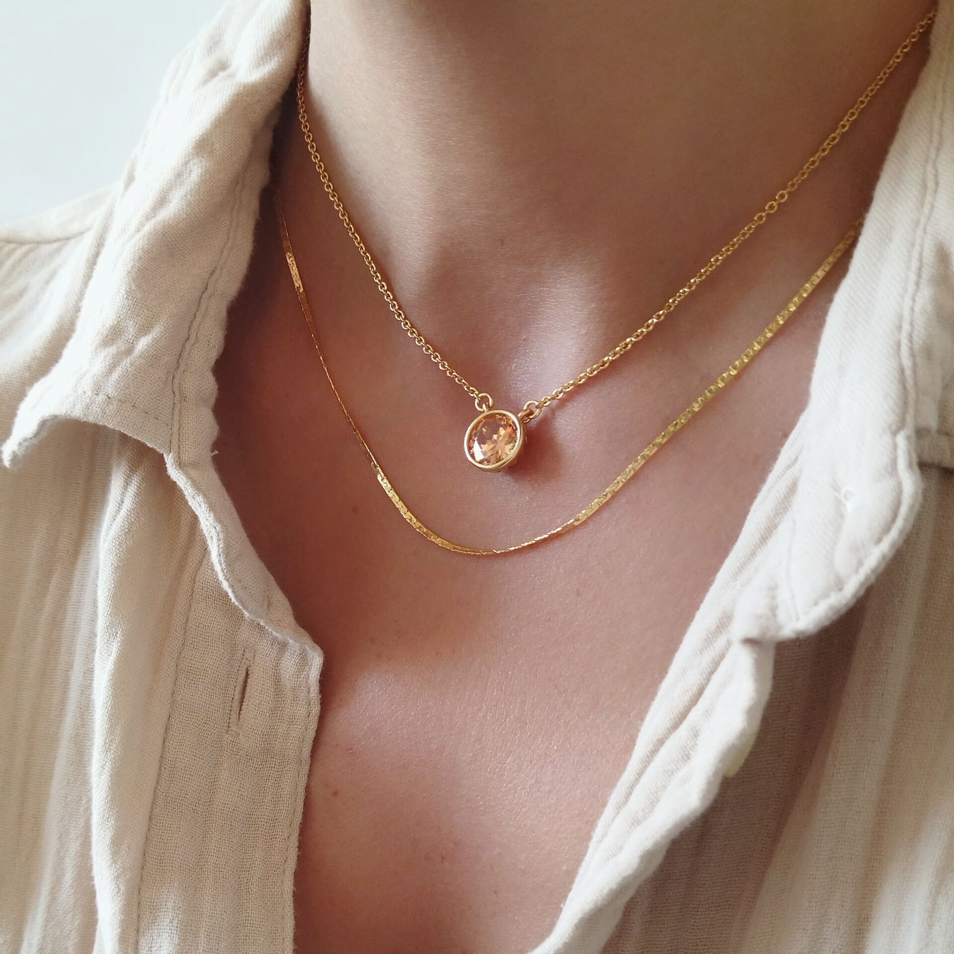 Doğum taşının enerjisiyle taçlanan, zarif ve modern choker kolye modeli.