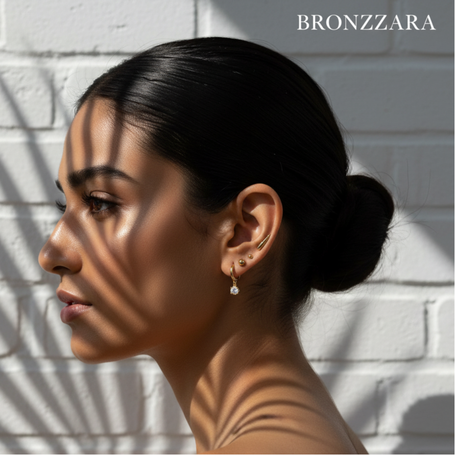 Çoklu halka küpeler ve piercingler ile farklı ve modern bir görünüm elde edebilirsiniz.