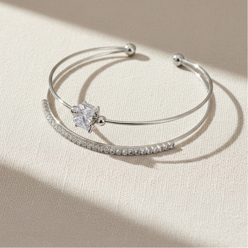 2'li Charm Orta Taş Detay Bilezik