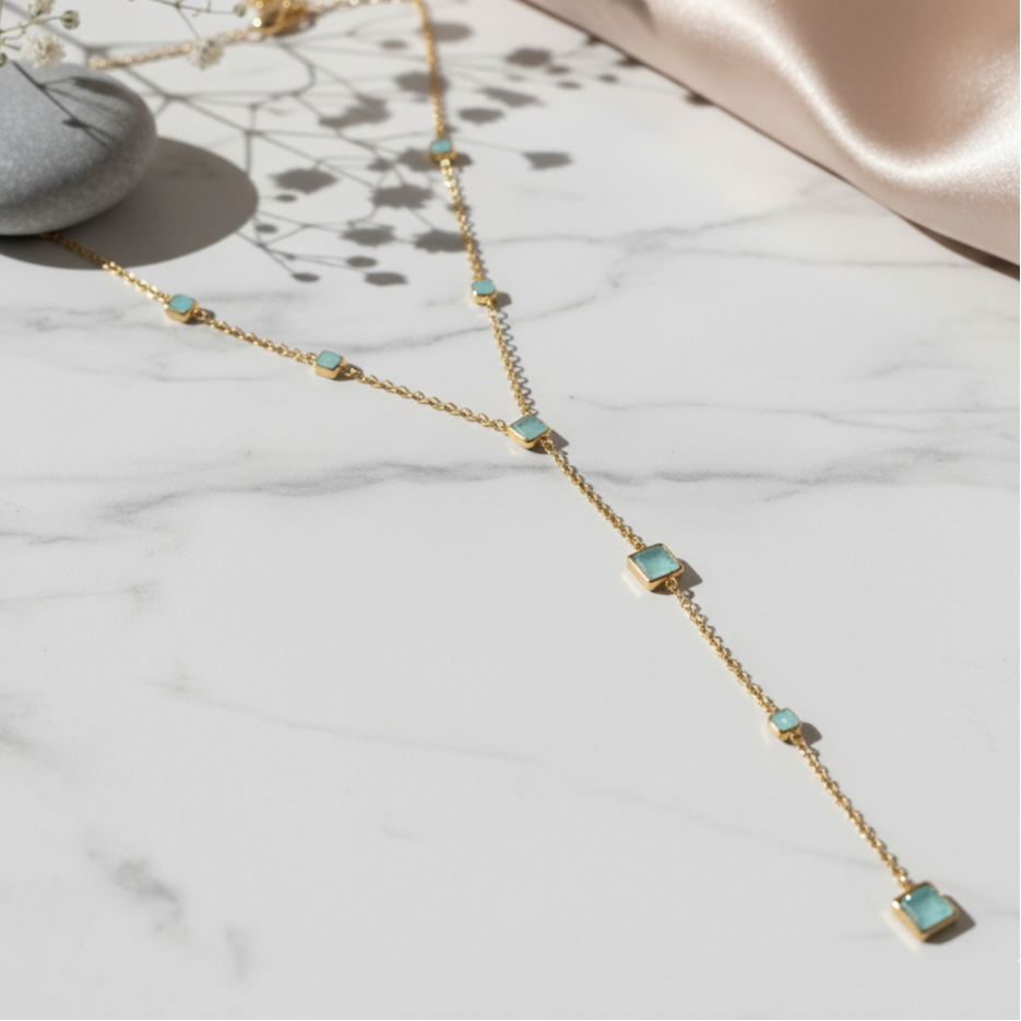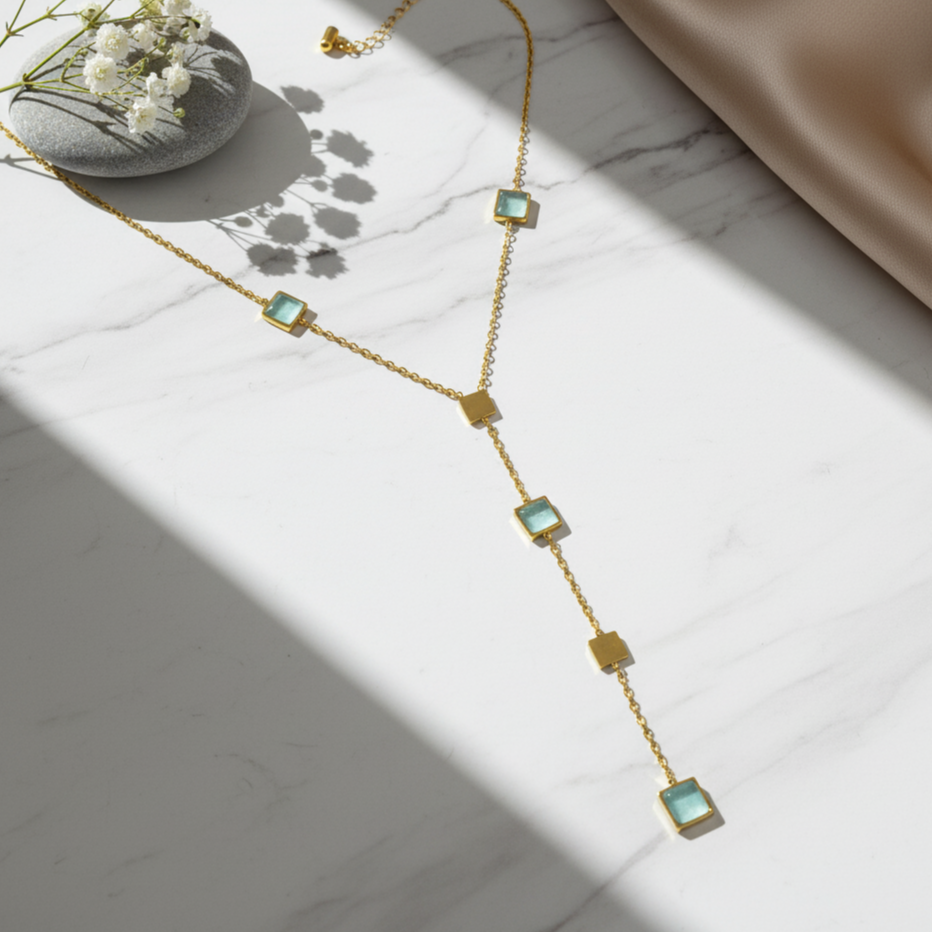 KARE FORM SEDEF TAŞLI ÇELİK Y KOLYE