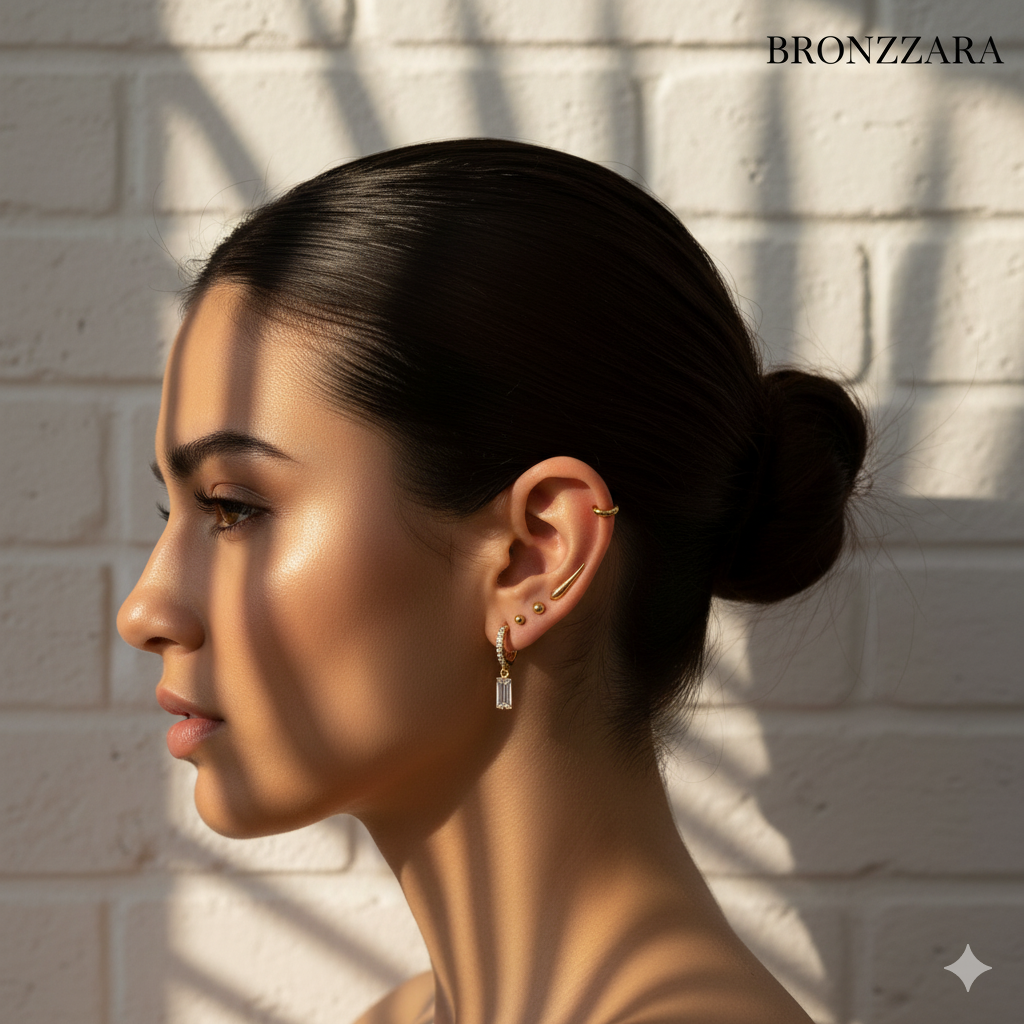 Çoklu halka küpeler ve piercingler ile farklı ve modern bir görünüm elde edebilirsiniz.