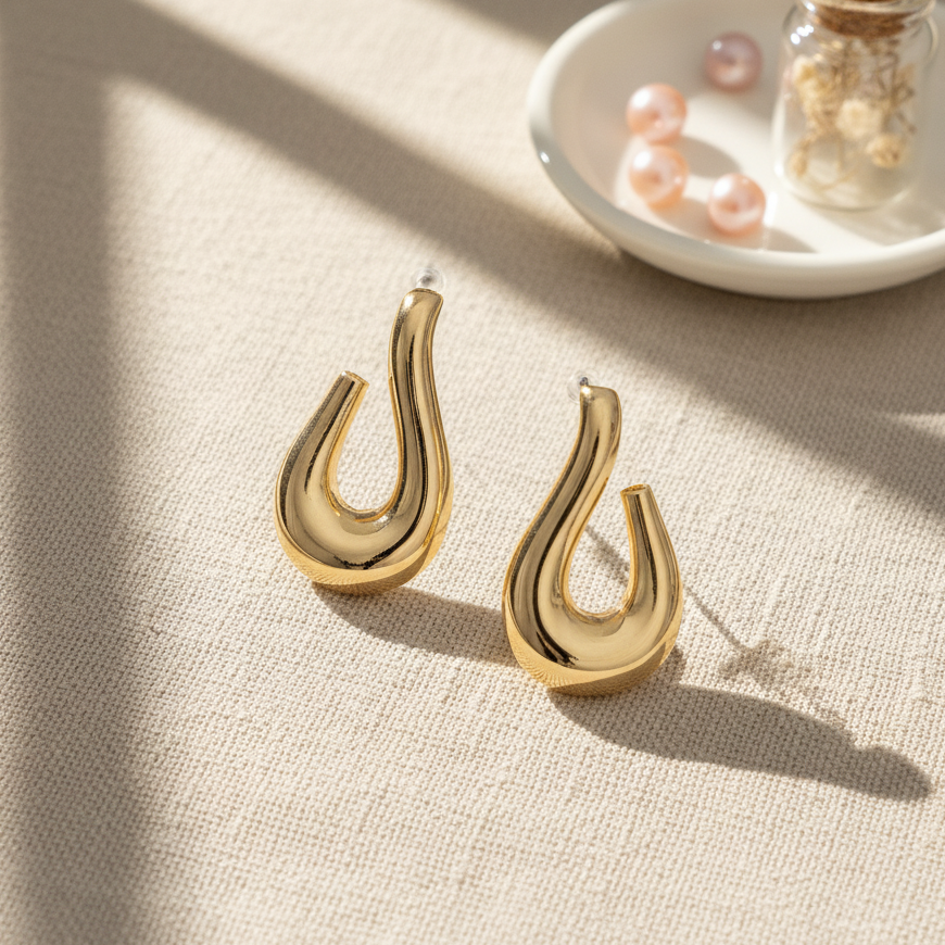 Bu muhteşem doğal form şekilli küpeler, doğanın zarif detaylarını takı dünyasına taşıyor.