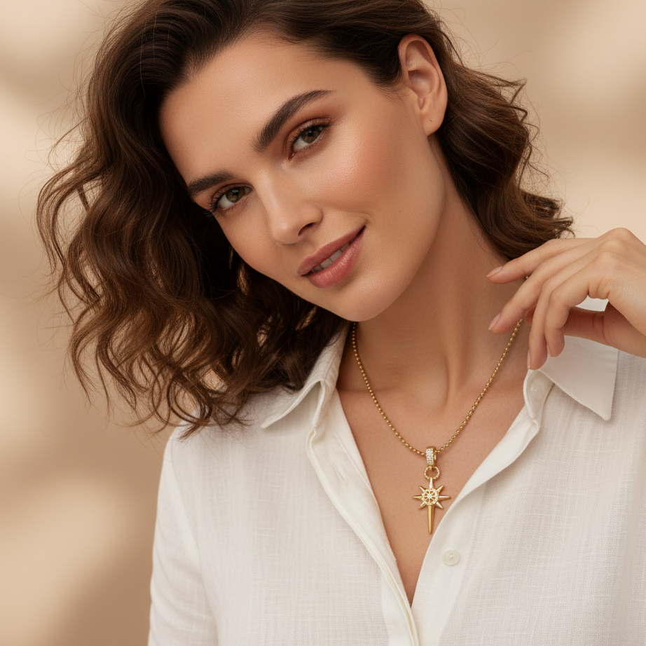 KUZEY YILDIZI ÇELİK CHARM KOLYE