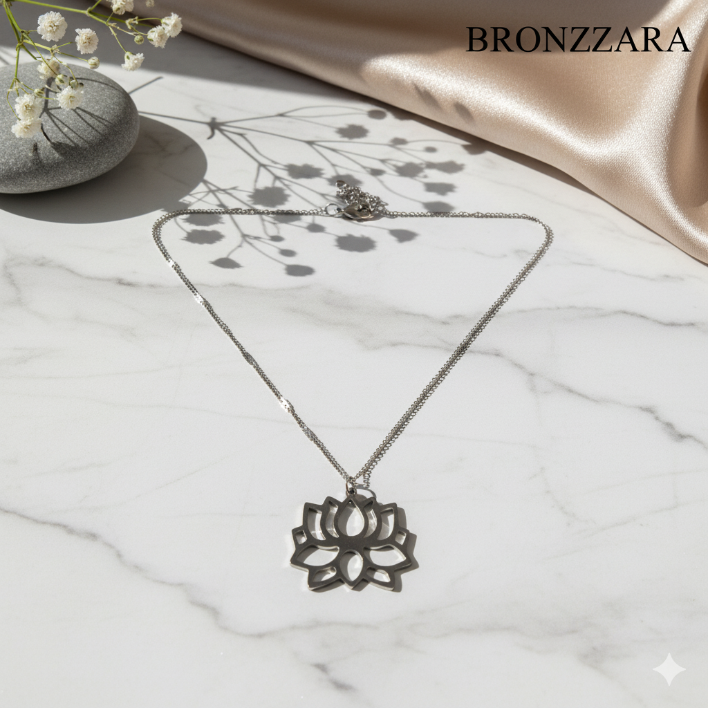 Bu çelik lotus çiçeği sembol kolye şıklığı ve zarafeti bir arada sunar.