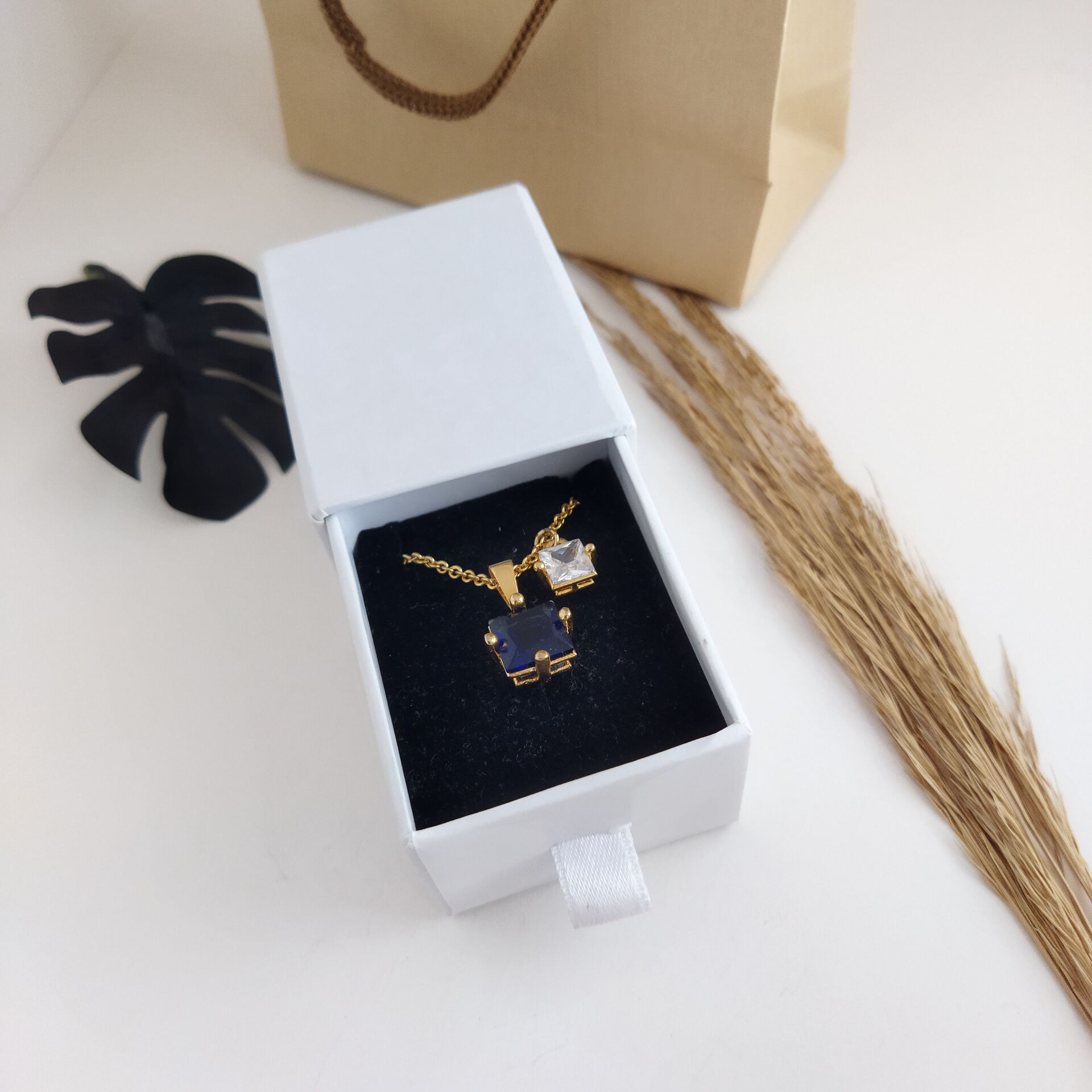 Minimal kare formda tasarlanan bu zarif kolye, yan yana gelen iki doğum taşıyla anlamını senin için buluyor.
