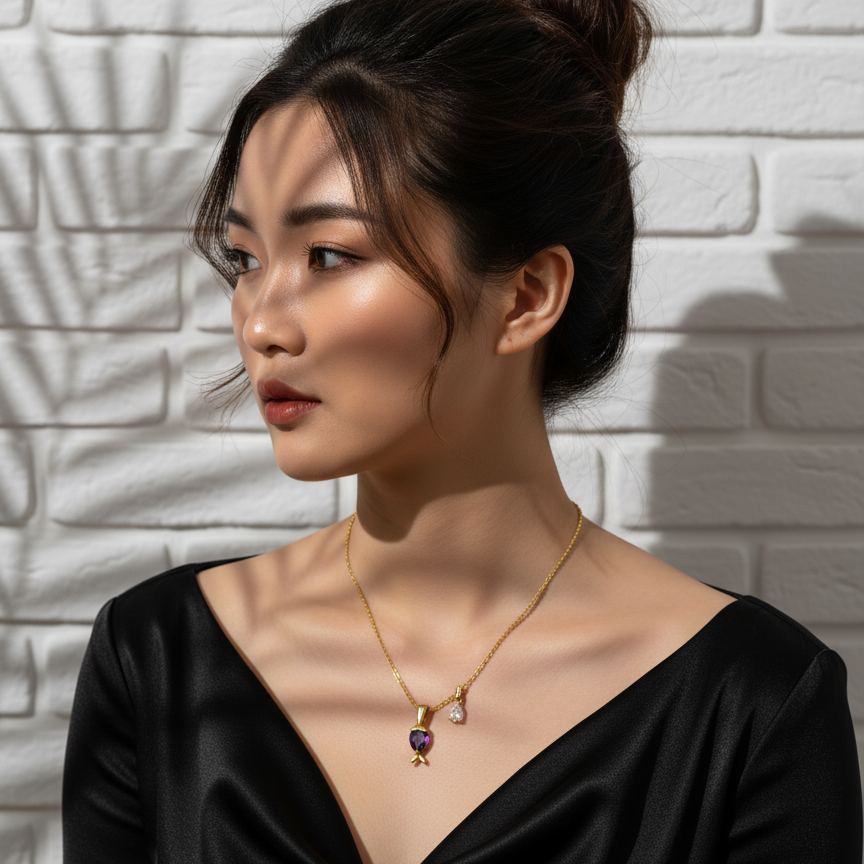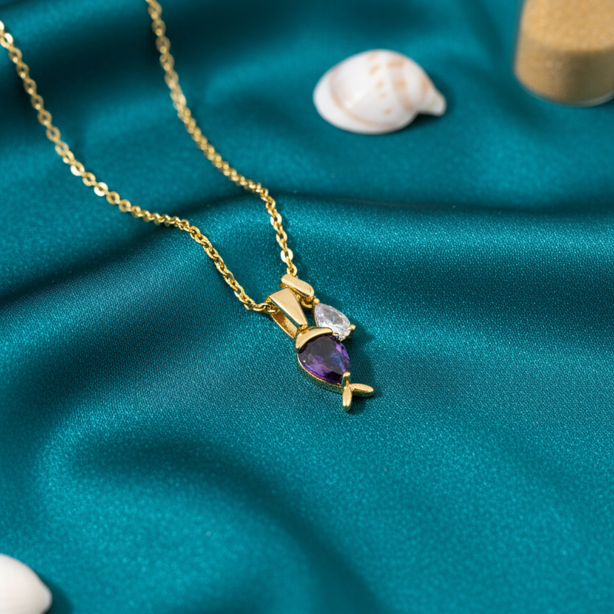 Kişisel Enerji Doğum Taşı Balık Kolye ( AMETHYST ŞUBAT )