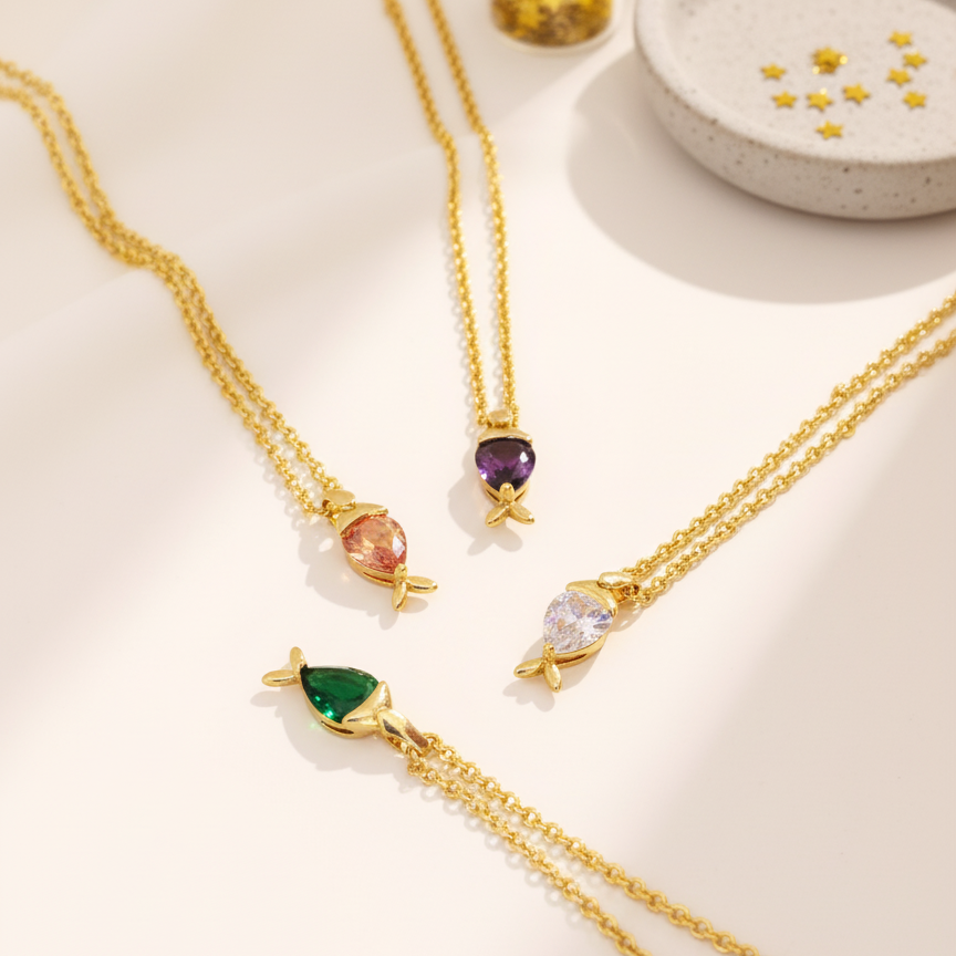İkili formda tasarlanan balık figürü ve yanında yer alan doğum taşı detayıyla ister anne & çocuk anlamı taşısın, ister iki ruhu simgelesin...