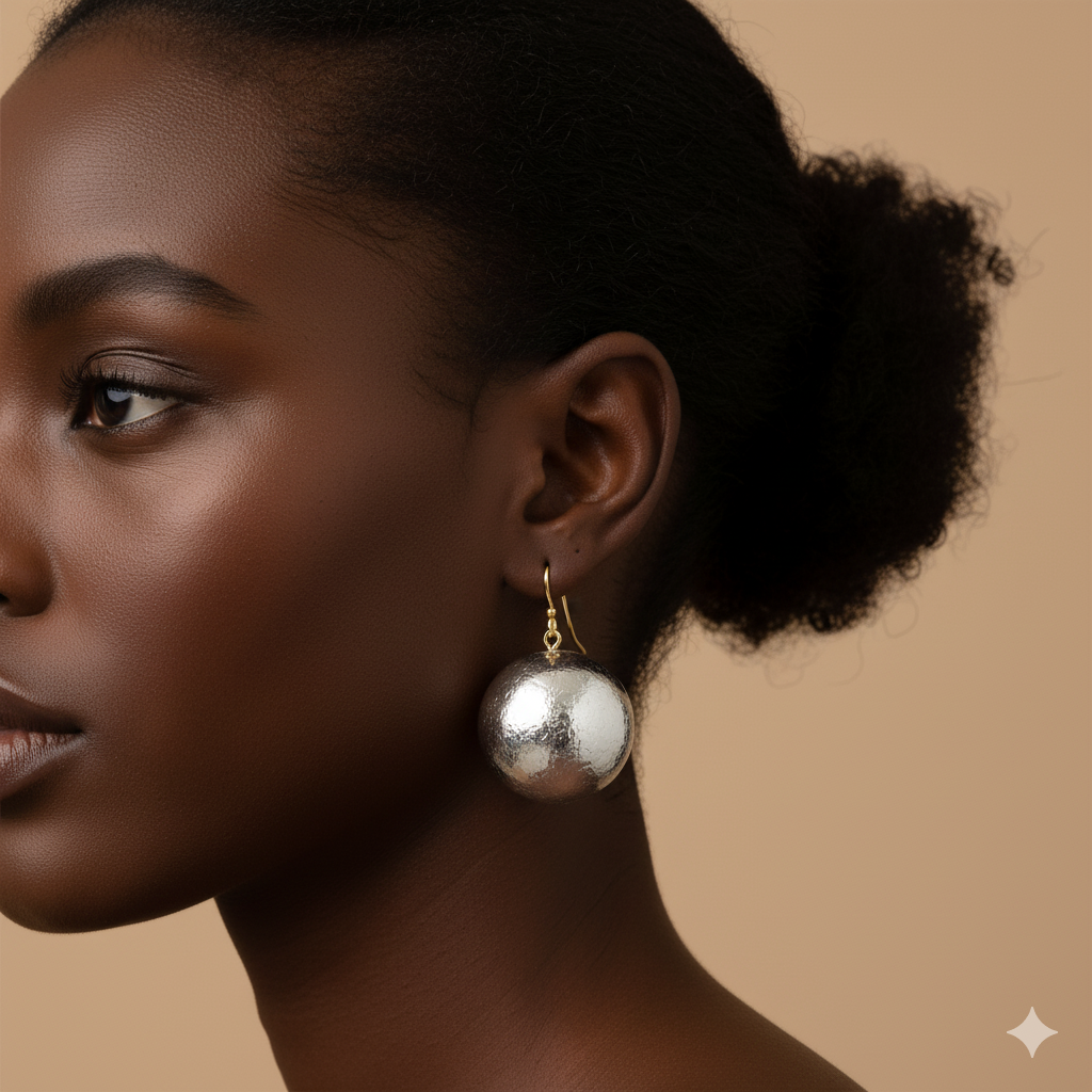Bu muhteşem metal top form küpeler, stilinize modern ve zarif bir dokunuş katıyor.
