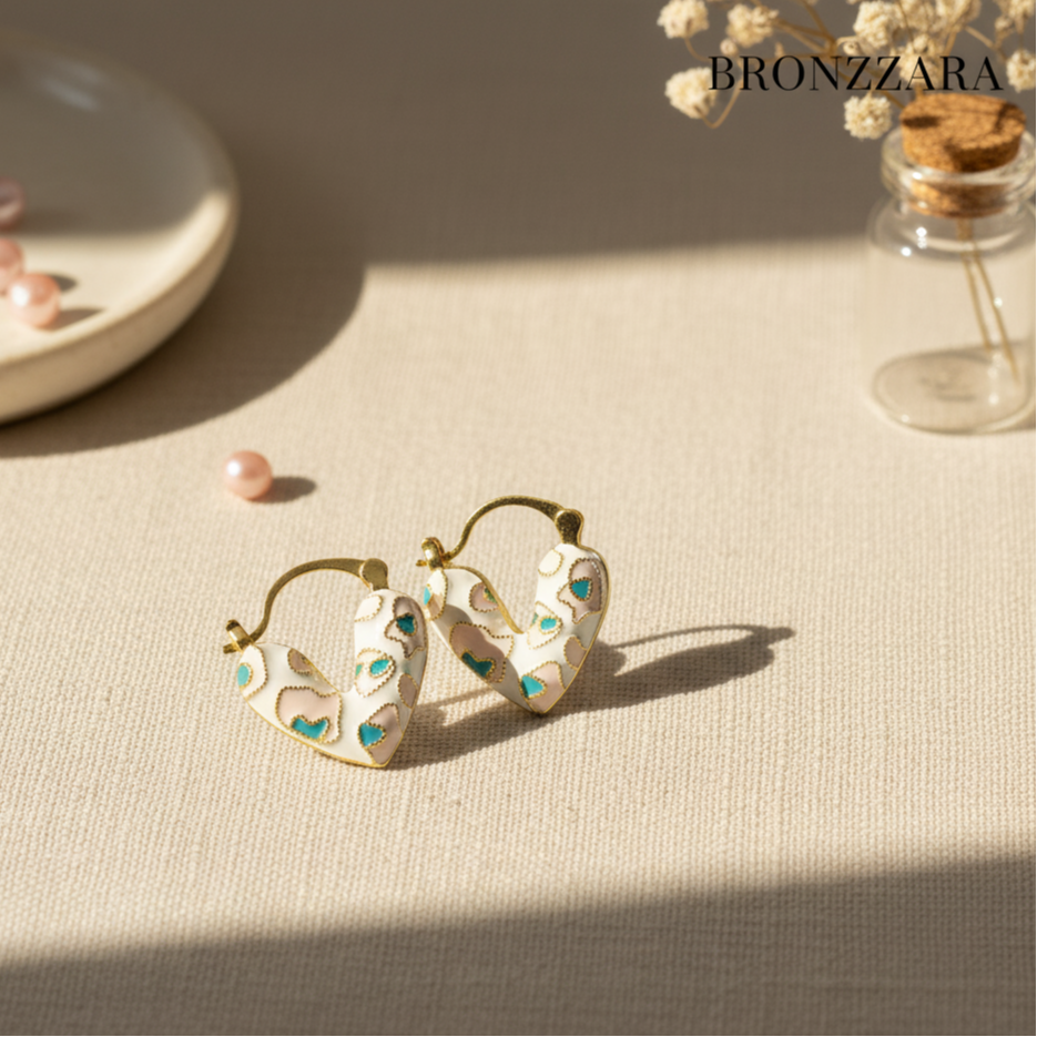 MİNELİ RENKLİ KALP HALKA KÜPE