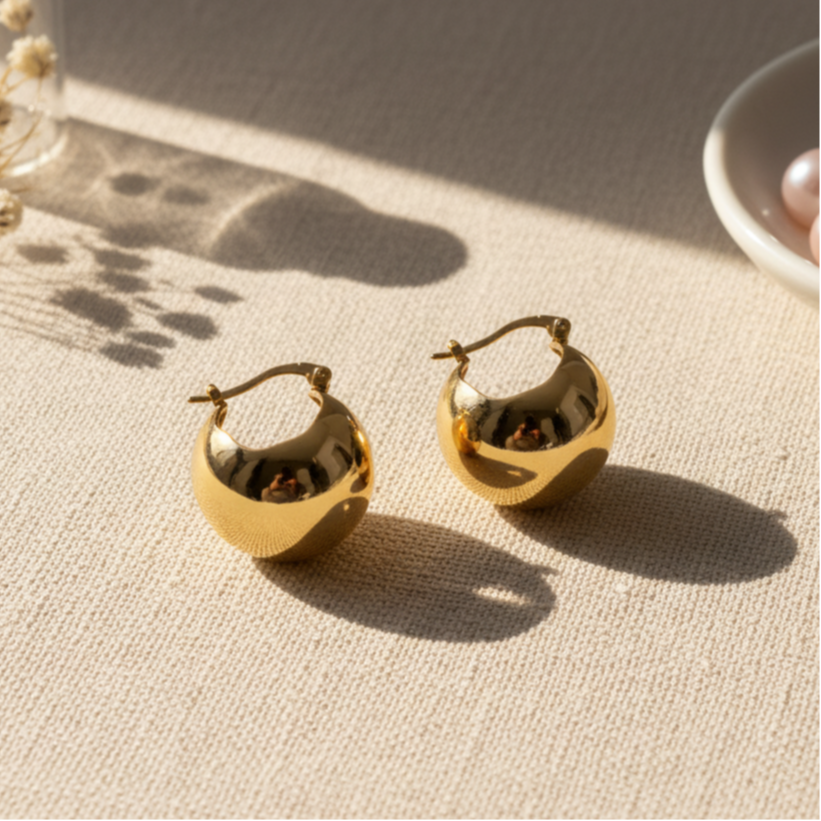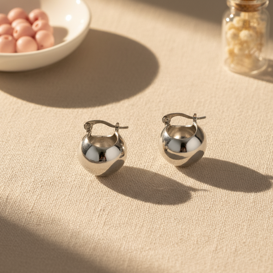 Bu muhteşem metal top form küpeler, stilinize modern ve zarif bir dokunuş katıyor.