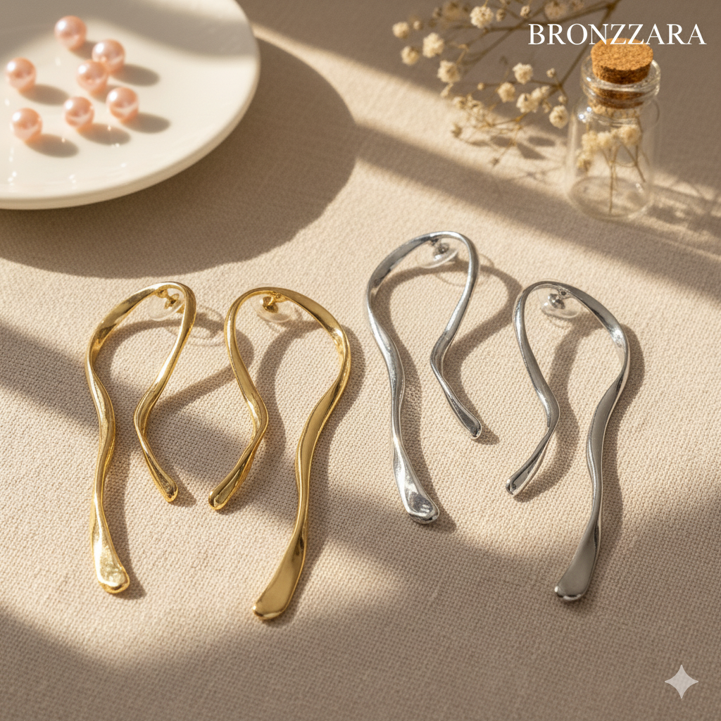 Bu zarif su damlası akış görünümlü küpeler, benzersiz ve şık bir tarz sunuyor. İnce detayları,hafifliği ve parlak tasarımıyla dikkat çekiyor.
