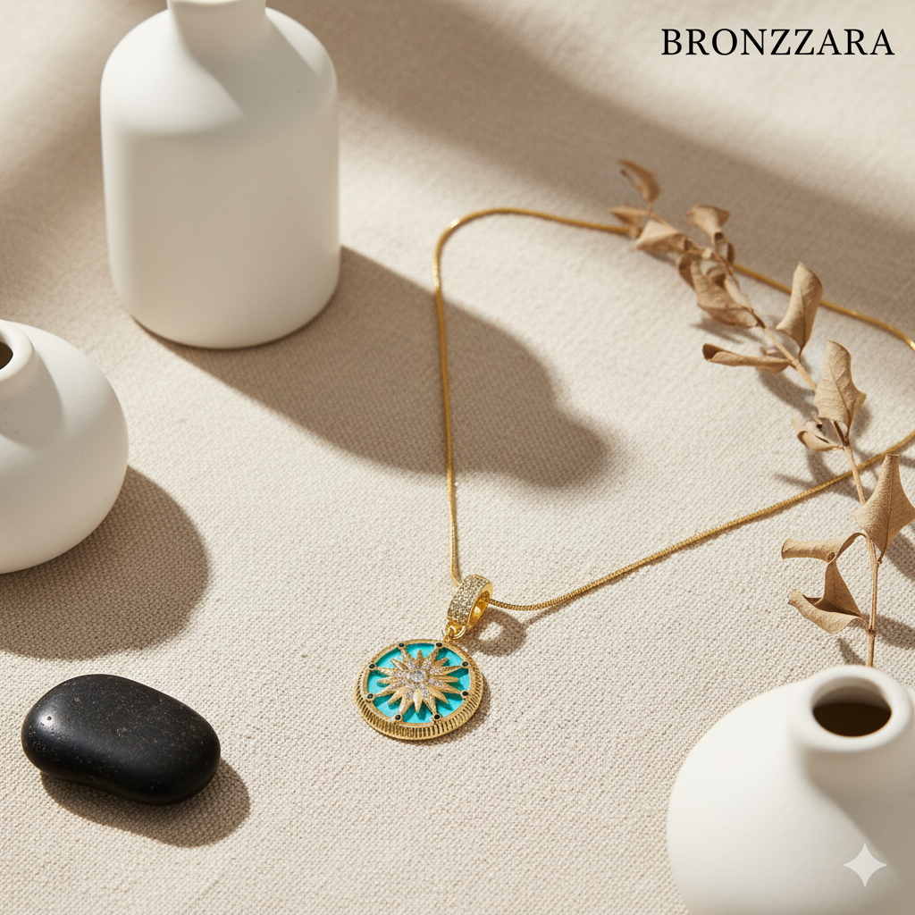 ÇELİK TURKUAZ TAŞLI GÜNEŞ CHARM KOLYE