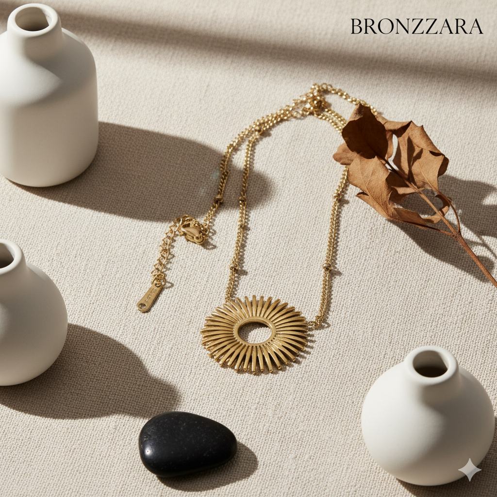 ÇELİK GOLD PLAKA GÜNEŞ KOLYE