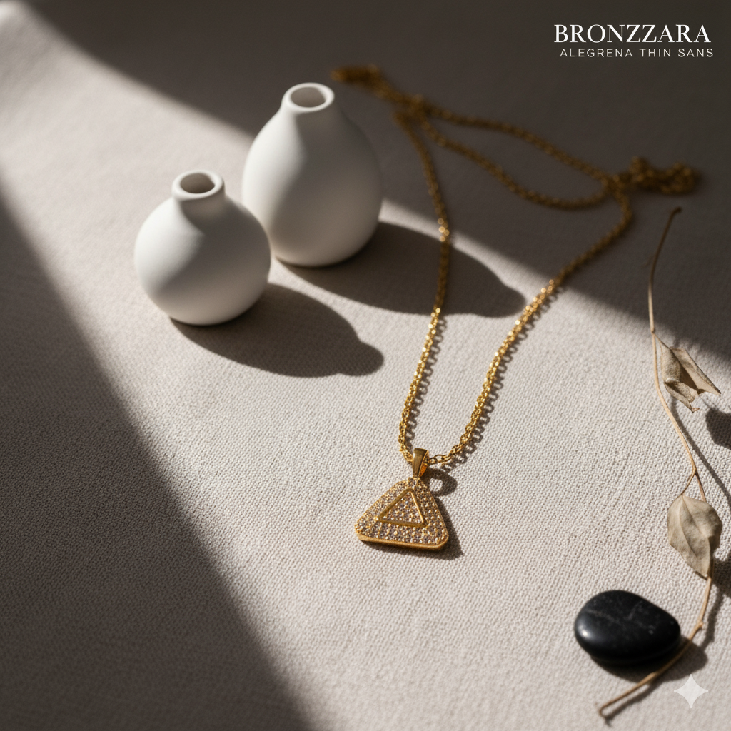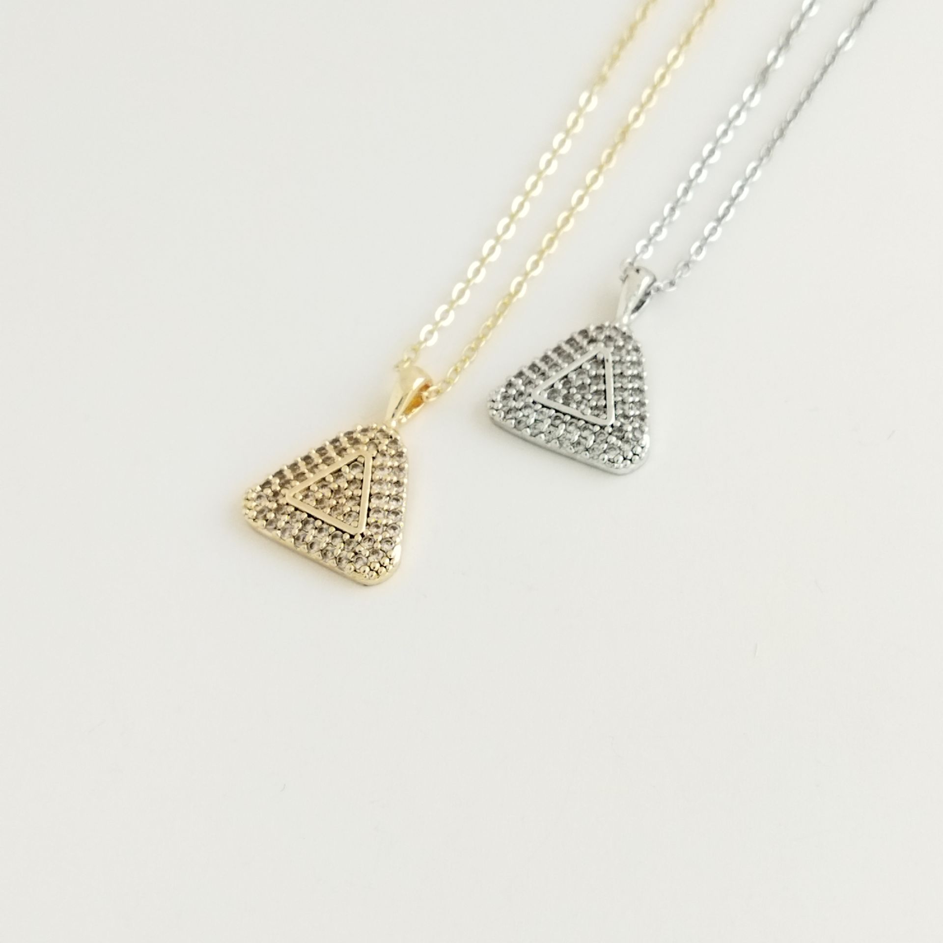 Bu zirkon taşlı üçgen sembol kolye şıklığı ve zarafeti bir arada sunar.