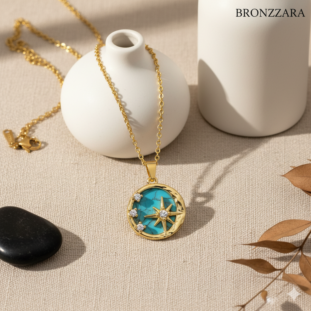 ÇELİK TURKUAZ KUZEY YILDIZI DETAY KOLYE