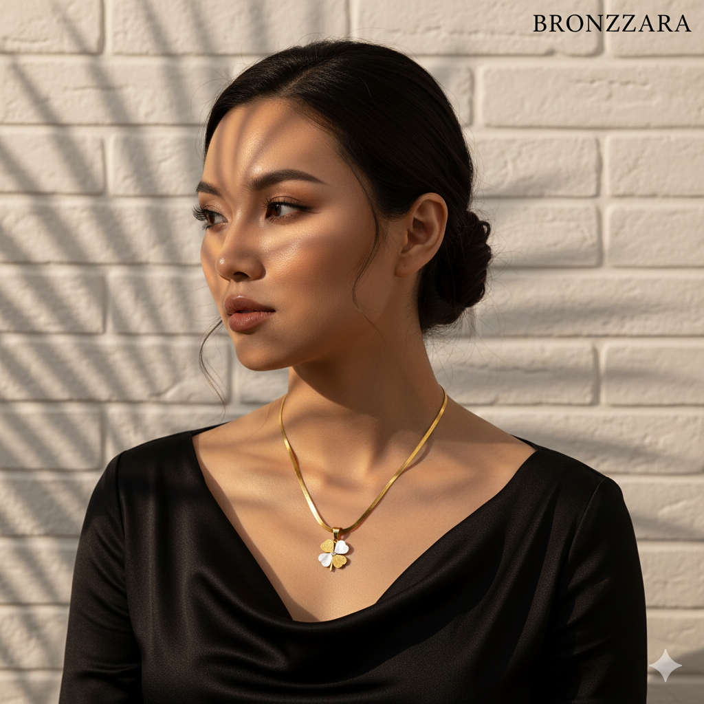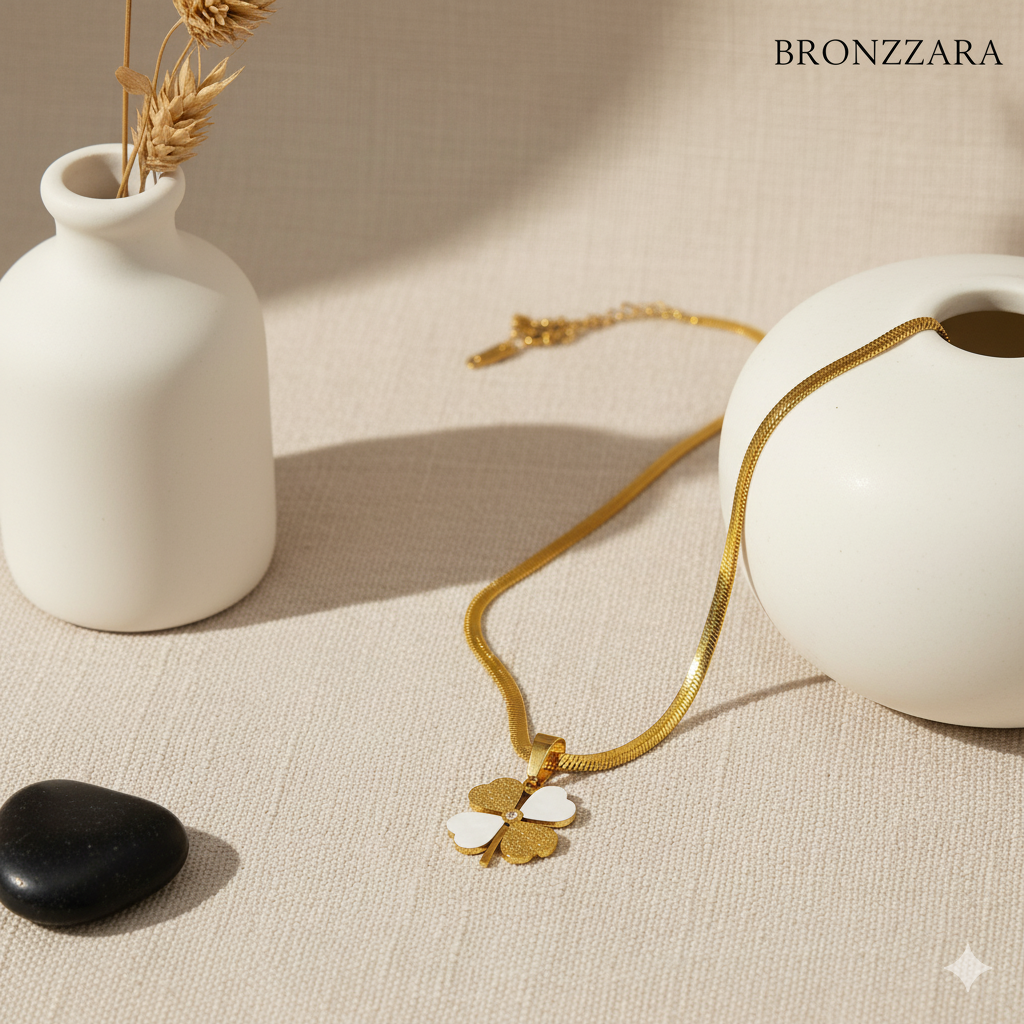 ÇELİK SEDEF TAŞLI CHARM YONCA KOLYE