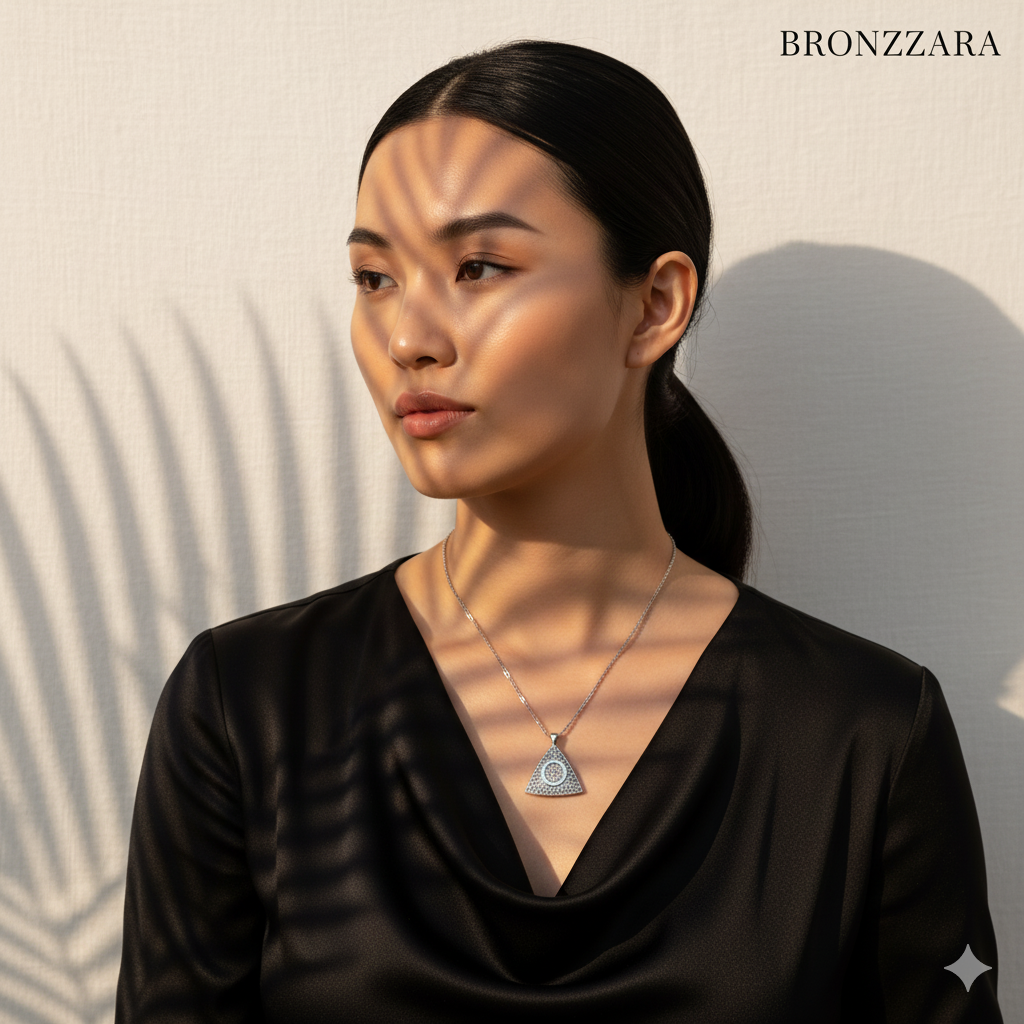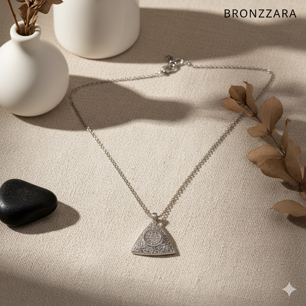 ÇELİK MARKAZİT ZİRKON TAŞLI ÜÇGEN KOLYE
