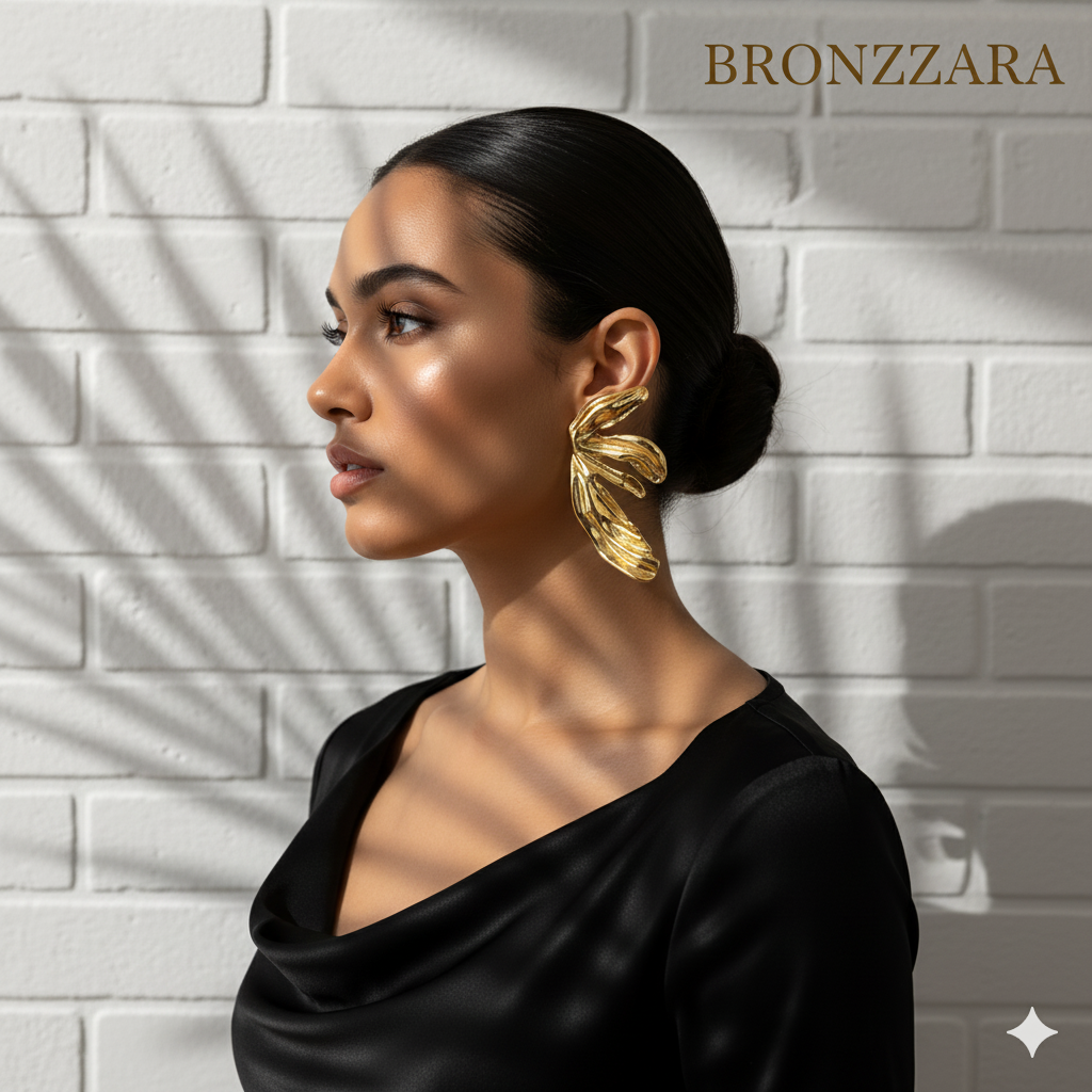 GOLD BÜYÜK YAPRAK DESEN KÜPE