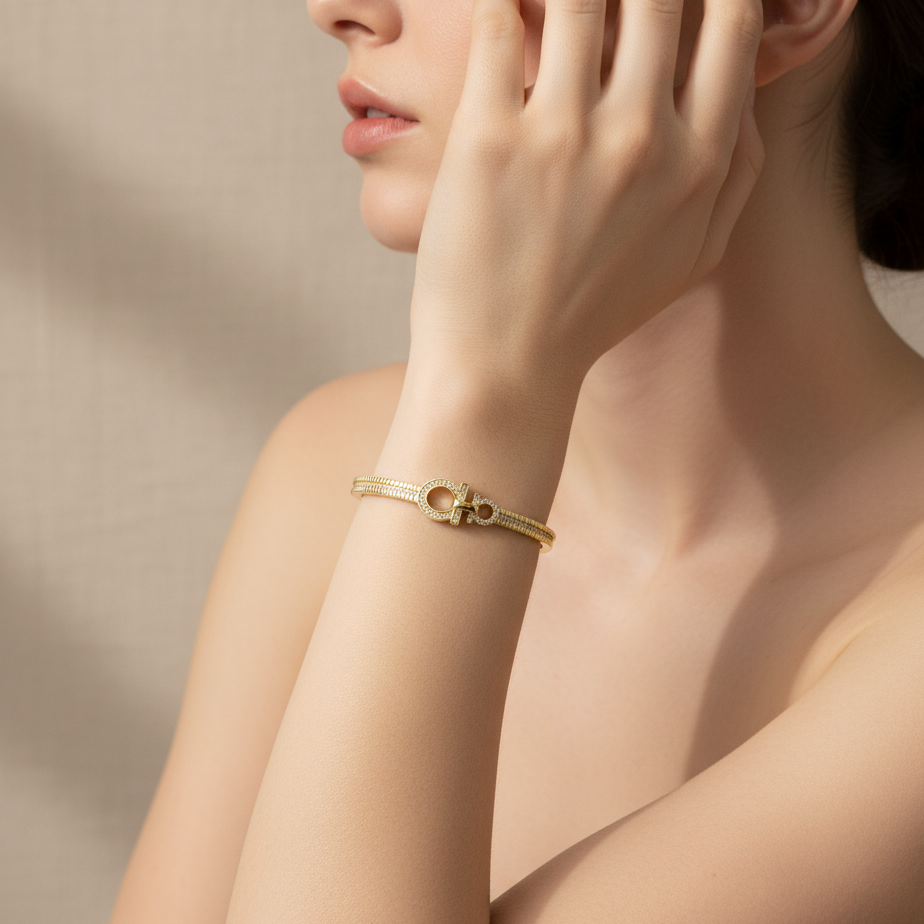 PREMİUM TAŞLI KİLİT DETAY ÇELİK BİLEZİK