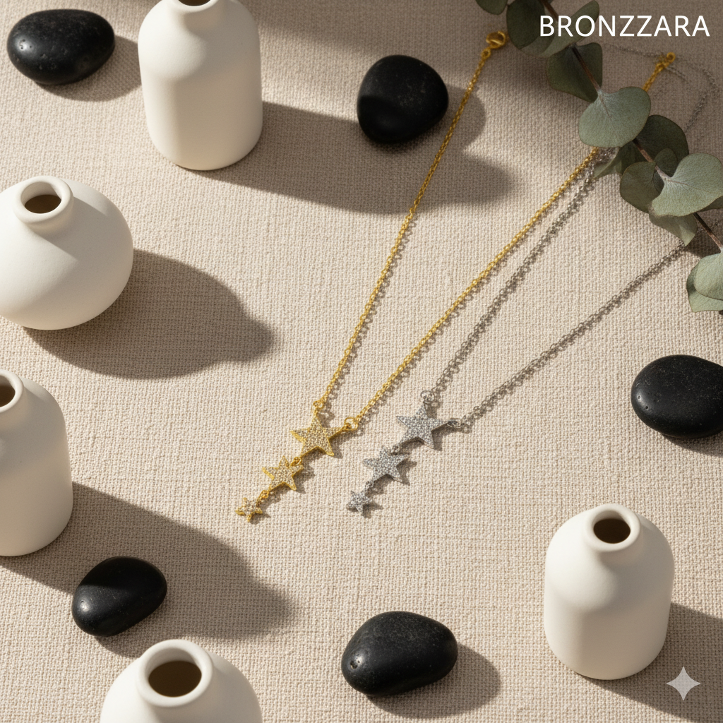 YILDIZ DETAY ÇELİK TAŞLI Y KADIN KOLYE
